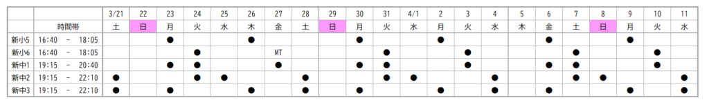 ★一部の学年はキャンセル待ちとなっている場合がございます。